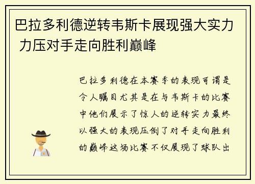 巴拉多利德在本赛季的表现可谓是令人瞩目,尤其是在与韦斯卡的比赛中,他们展示了惊人的逆转实力,最终以强大的表现压倒了对手,走向胜利的巅峰。这场比赛不仅展现了球队出色的战术执行力和临场应变能力,还体现了球...