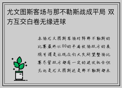 本场尤文图斯客场对阵那不勒斯的比赛最终以0-0的平局收场,双方的表现可谓是让观众们大失所望。整场比赛,尽管双方都有一定的进攻机会,但无论是尤文图斯还是那不勒斯,都未能突破对方的防线,最终导致比赛未能产...